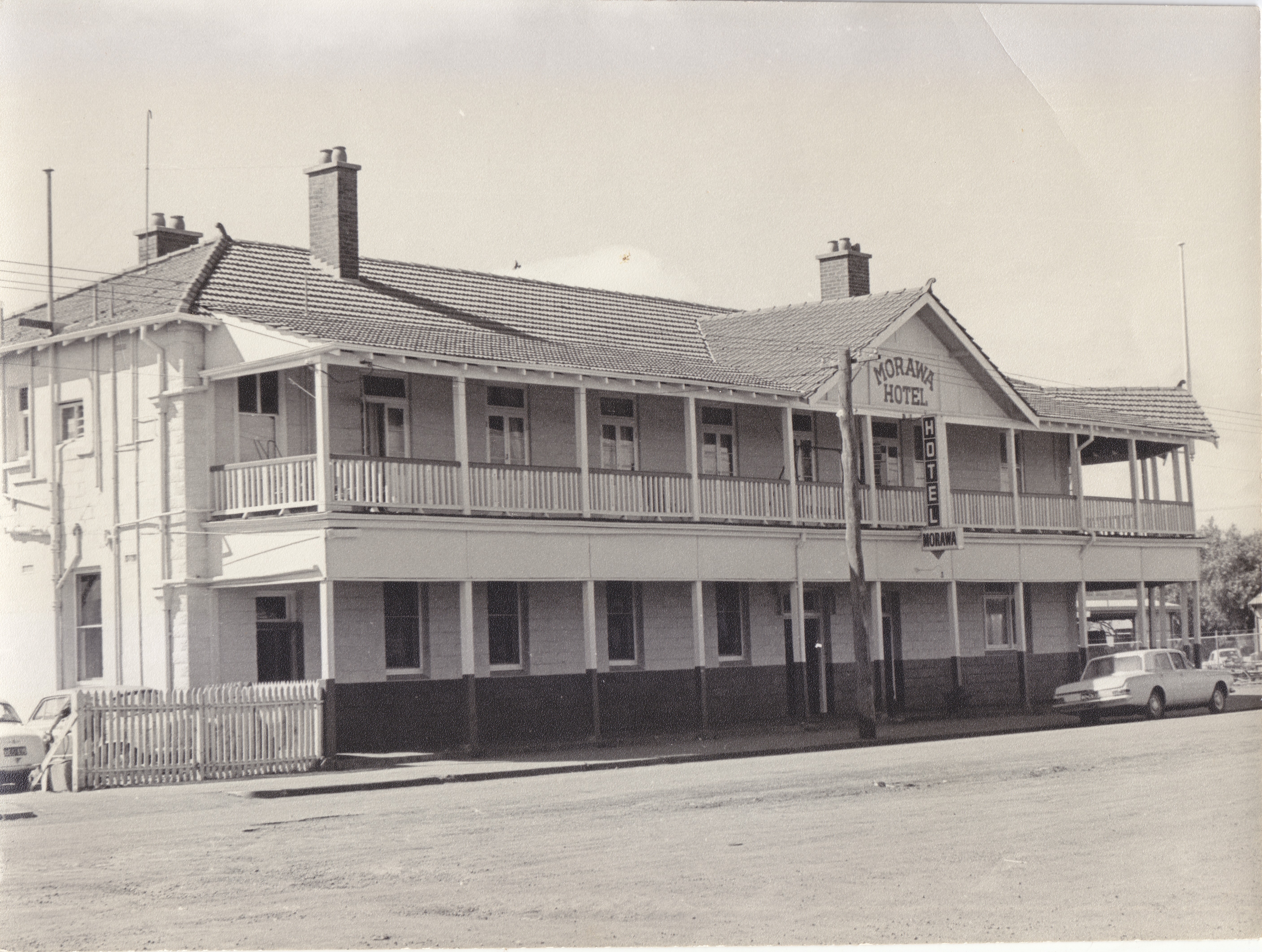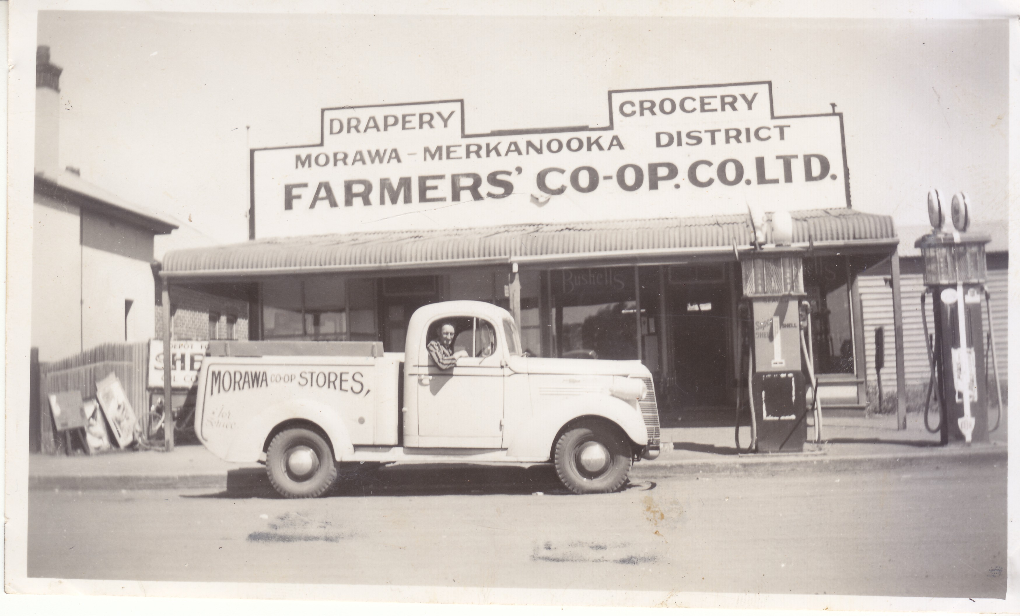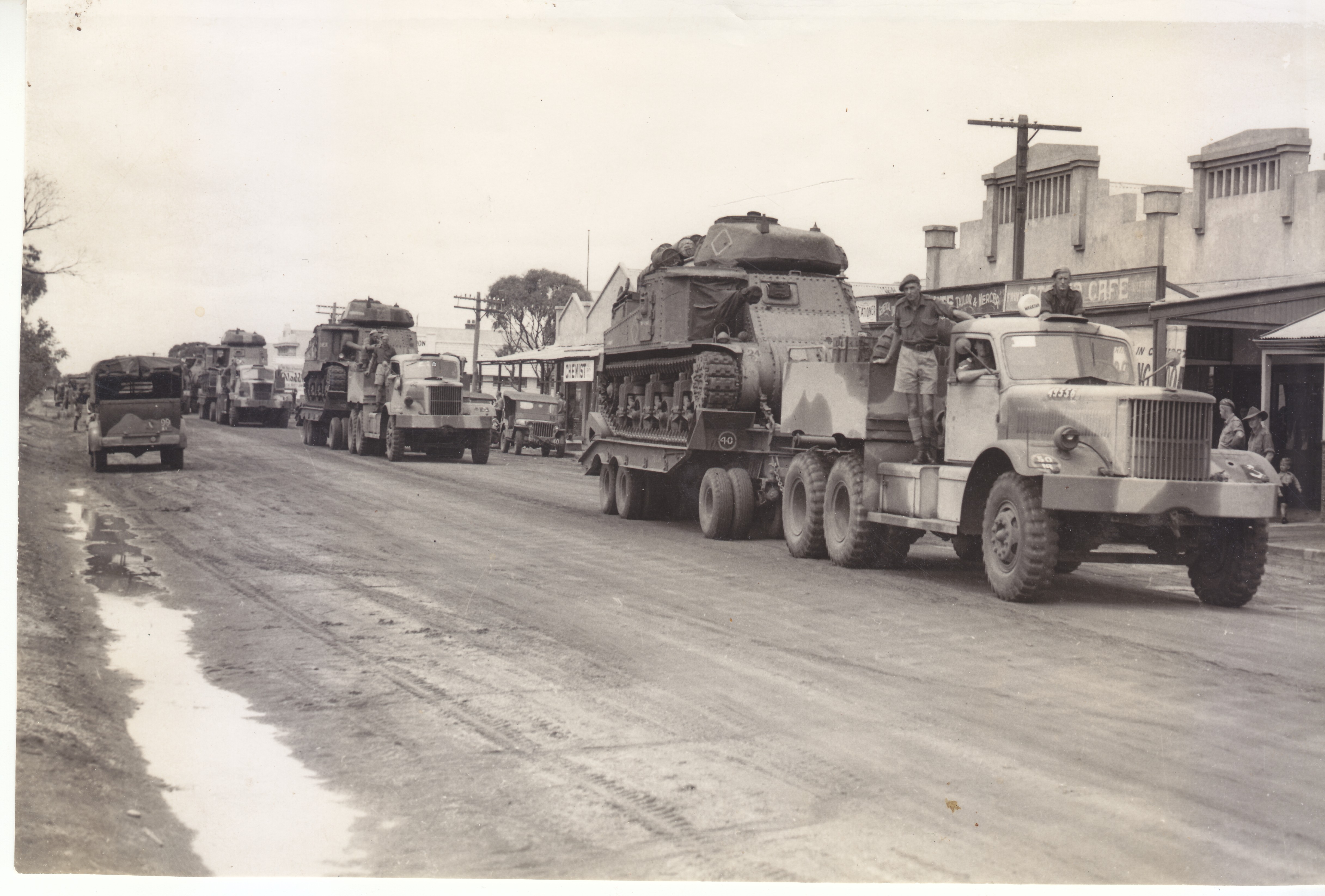 Army trucks in Winfield Street, Morawa c1941-42. |